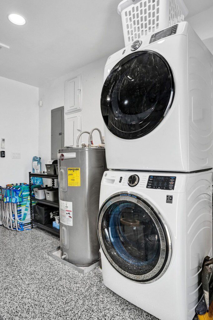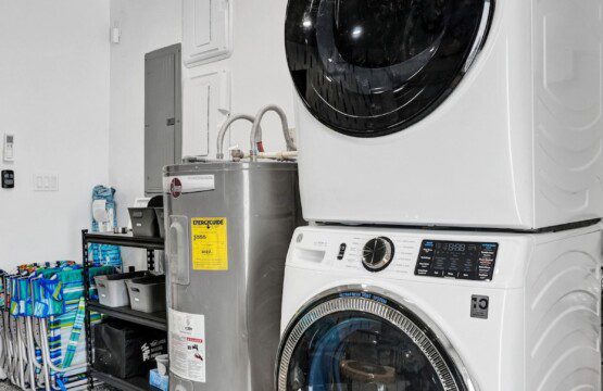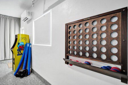 Step into our beautifully landscaped backyard, a true oasis designed for relaxation and entertainment. Enjoy a refreshing swim in the heated pool (heating for a fee). The outdoor games area is perfect for some friendly competition, featuring cornhole, ladderball, giant Jenga, and a putting green to practice your golf skills. With lounge chairs for sunbathing, you’ll find the perfect spot to soak up the Florida sunshine.