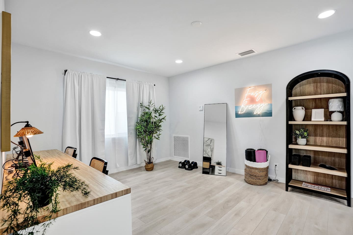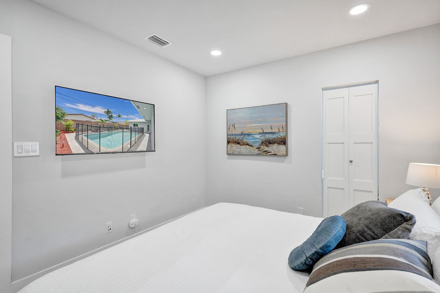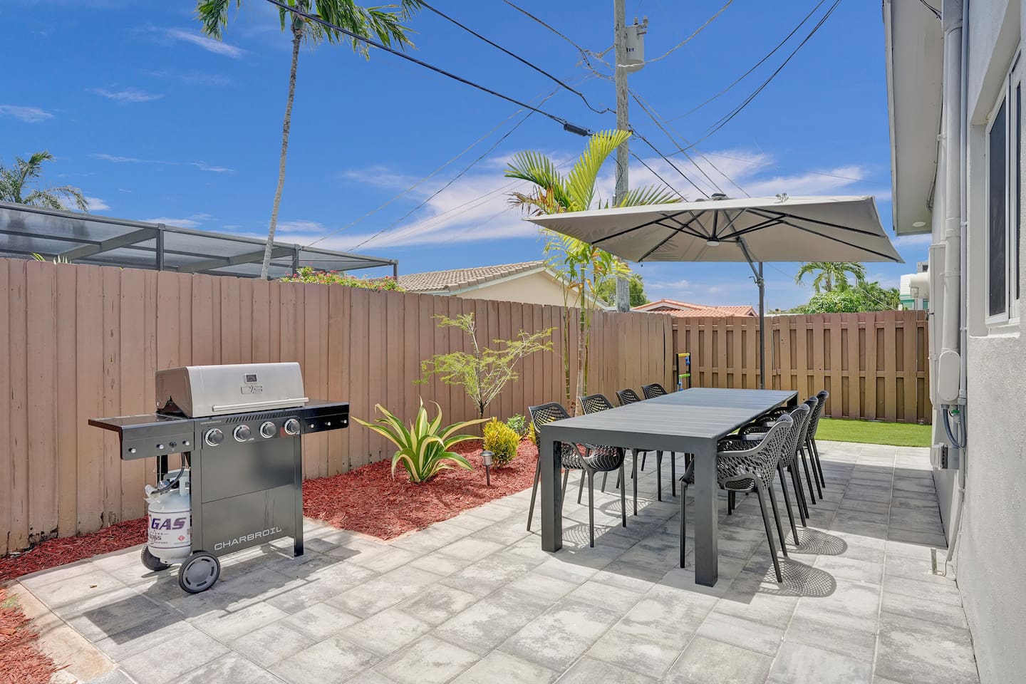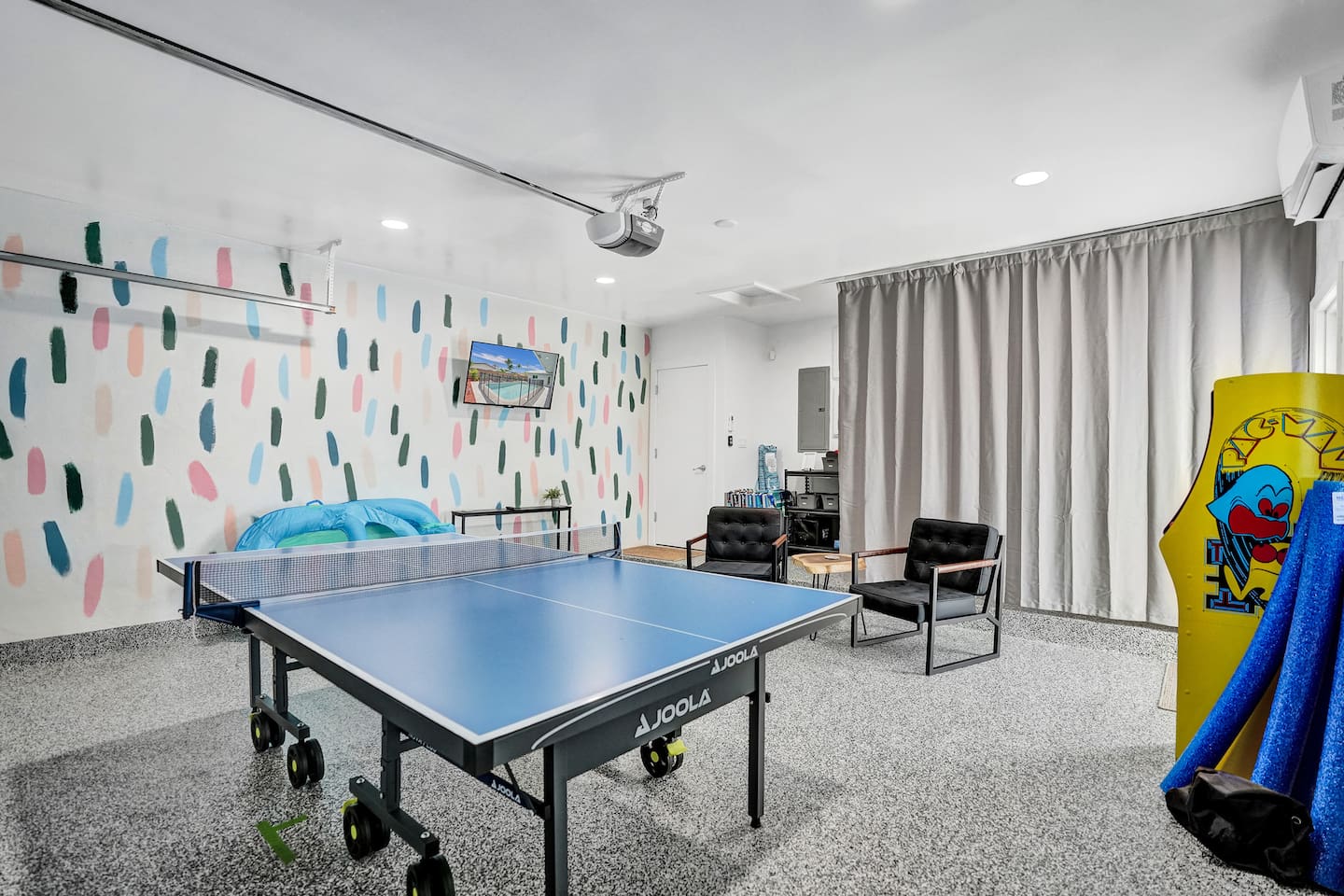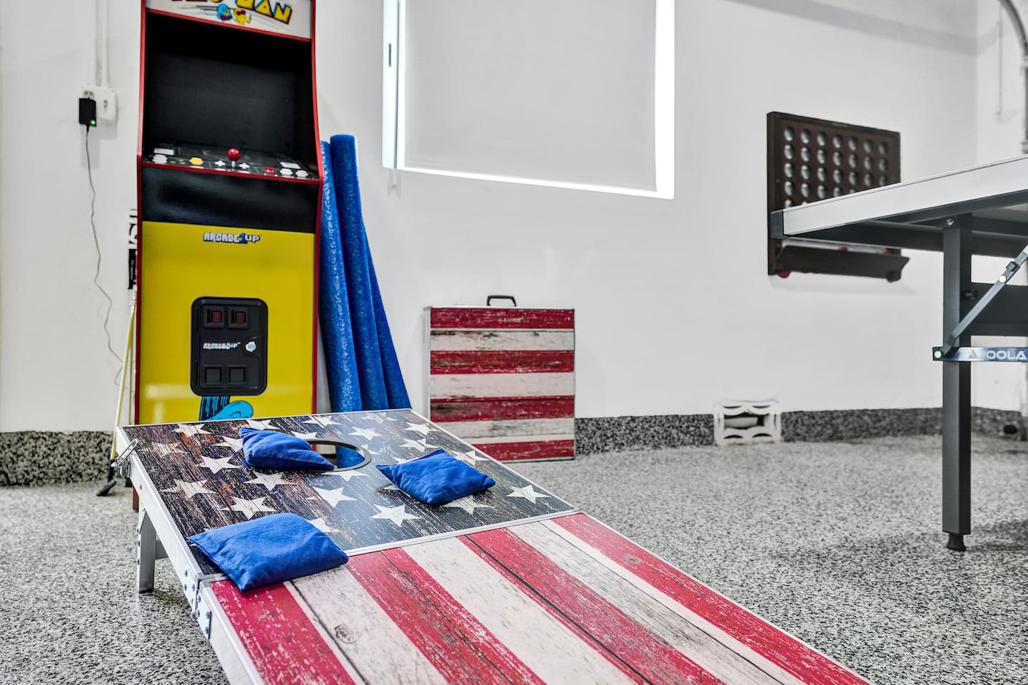Cypress Breeze comfortably sleeps up to six guests (2 per bedroom) and one baby in its spacious 3-bedroom, 2-bath layout. Each room is thoughtfully designed to ensure a restful stay: • The Cypress Room: A serene retreat featuring a king-sized bed and a TV. Massive walk-in closet with a nursery set up in it as well as an ensuite bathroom. • The Ocean Room: Cozy and inviting with a queen-sized bed and TV. Walk-in closet gives room for all your clothes and luggage. • The Sunrise Room: Vibrant room with a queen-sized bed. Walk-in closet gives room for all your clothes and luggage. The living room invites you to unwind with a big screen TV, while the gaming room — set in a spacious garage — promises hours of fun with a ping pong table, Pac-Man machine, board games hung on the walls, lounge chairs, and another TV. You’ll also find a dedicated dual workspace with two monitors, perfect for remote work or catching up on emails, along with a small workout area equipped with mats and dumbbells for your morning routine. The fully stocked kitchen comes with everything you need to prepare delicious meals. At Papa’s Getaways, we pride ourselves on stocking kitchens so well, you could host your turkey dinner here. Dine together in the spacious dining area or step outside onto the patio for a meal at the large outdoor dining table with a barbecue. All TVs are Roku and come with YouTube TV, offering all the basic channels and a great selection of sports networks. Step into our beautifully landscaped backyard, a true oasis designed for relaxation and entertainment. Enjoy a refreshing swim in the heated pool (heating for a fee). The outdoor games area is perfect for some friendly competition, featuring cornhole, ladderball, giant Jenga, and a putting green to practice your golf skills. With lounge chairs for sunbathing, you'll find the perfect spot to soak up the Florida sunshine. We could only accommodate a maximum of 3 cars on the driveway for overnight parking. Come down to South Florida and experience the 2026 FIFA World Cup in style at the Cypress Breeze. Just a 30 minute drive away from Hard Rock Stadium, you will want to spend your time in a home like ours that is closer to the beach as there is not much around the stadium itself. Miami will be hosting many great matches: - June 15: Saudi Arabia vs Uruguay - June 21: Uruguay vs Cabo Verde - June 24: Scotland vs Brazil - June 27: Colombia vs Cristiano Ronaldo and Portugal - July 3: "Match 86", Round of 32, Teams TBD - July 11: "Match 99", Quarter Final, Teams TBD - July 18: "Match 103", Bronze Medal Match, Teams TBD **Amenities** • Full driveway for convenient parking • Heated pool for year-round enjoyment • Outdoor play area with cornhole, ladderball, and giant Jenga, and a putting green • Game room in the garage with a ping pong table, PAC MAN, and many board game classics • Dual workspace on our massive 2-person desk with 2 monitors to stay up to date on your work • Dedicated workout area with yoga mats, workout mats, adjustable weight dumbbells, and some elastic bands • Lounge chairs for sunbathing in the beautifully landscaped yard • Shower basics like body wash, shampoo, and conditioner • Beach chairs, umbrellas, and beach towels provided • Pool toys and outdoor games in garage • Washer and dryer for your convenience, also in the garage