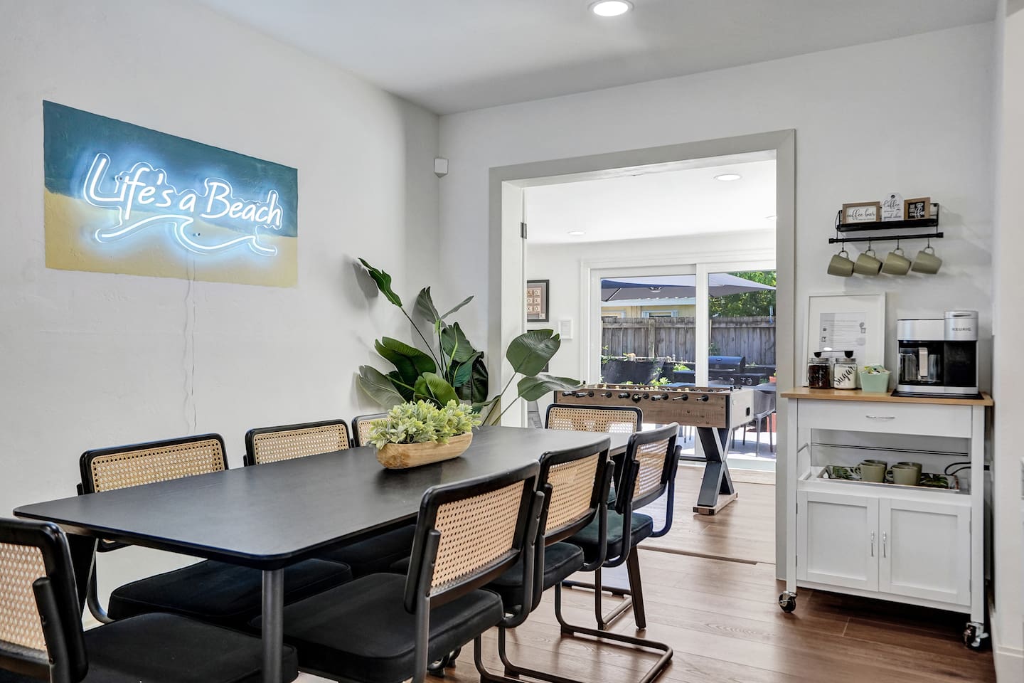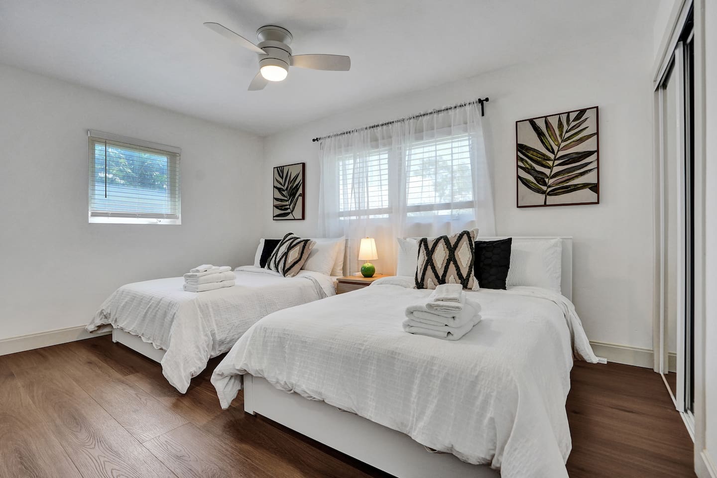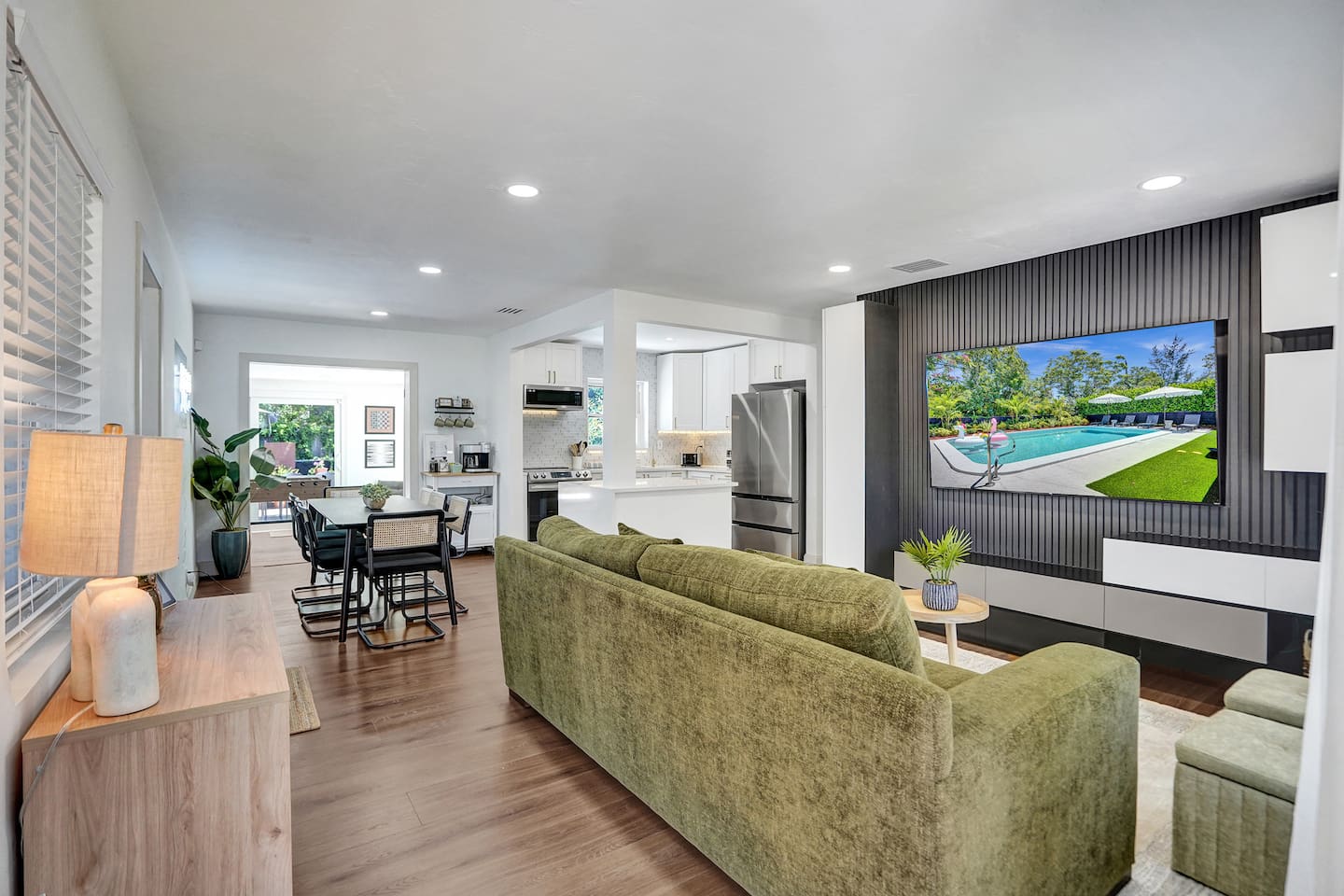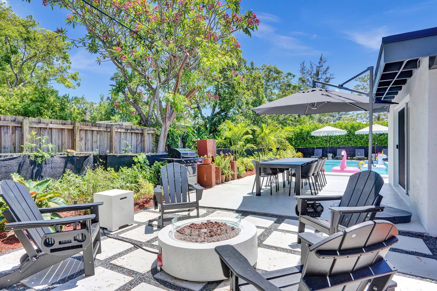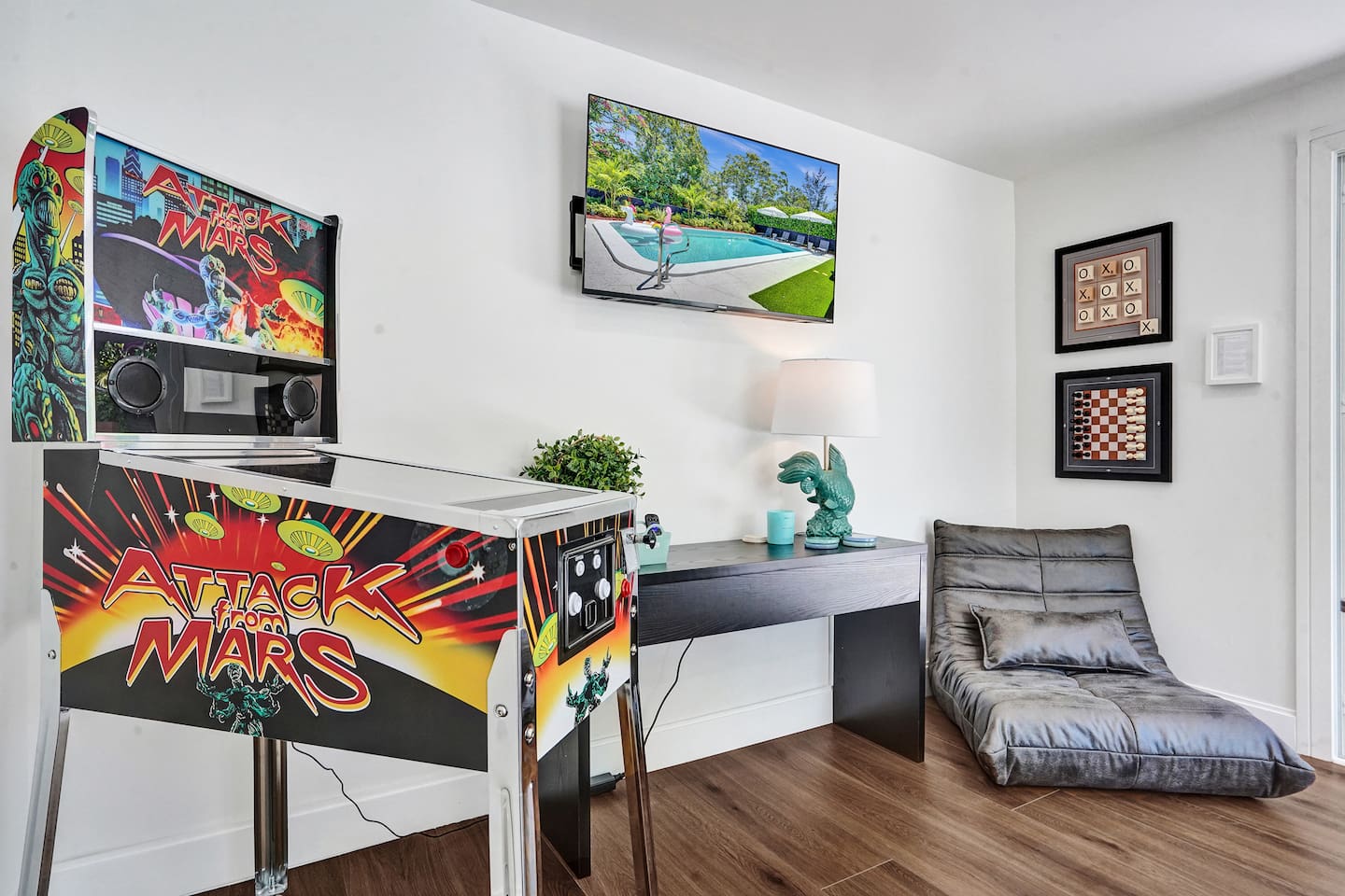 Palmpano Oasis comfortably sleeps up to six guests (2 per bedroom) in its spacious 3-bedroom, 2-bath layout. Each room is thoughtfully designed to ensure a restful stay: • The Sunset Room: A serene retreat featuring a king-sized bed and a TV workstation. • The Ocean Room: Cozy and inviting with a queen-sized bed and TV. • The Palm Room: Perfect for family or friends, offering two double beds. The living room invites you to unwind with a big screen TV, while the gaming room promises hours of fun with a foosball table, pinball machine, board games hung on the walls, lounge chairs, and another TV. The fully stocked kitchen comes with everything you need to prepare delicious meals. At Papa's Getaways, we pride ourselves on stocking kitchens so well, you could host your turkey dinner here. Dine together in the spacious dining area or step outside to the patio for a meal at the large outdoor dining table with a barbecue. All TVs are Roku and come with Fubo TV which has all the basic channels as well as a large variety of sports channels. Step into our beautifully landscaped backyard, a true oasis designed for relaxation and entertainment. Enjoy a refreshing swim in the heated pool (heating for a fee) or relax by the firepit in the outdoor lounge area. The outdoor games area is perfect for some friendly competition, featuring cornhole, ladderball, giant Jenga, and a putting green to practice your golf skills. With lounge chairs for sunbathing, you'll find the perfect spot to soak up the Florida sunshine. Come down to South Florida and experience the 2026 FIFA World Cup in style at the Palmpano Oasis. Just a 30 minute drive away from Hard Rock Stadium, you will want to spend your time in a home like ours that is closer to the beach as there is not much around the stadium itself. Miami will be hosting many great matches: - June 15: Saudi Arabia vs Uruguay - June 21: Uruguay vs Cabo Verde - June 24: Scotland vs Brazil - June 27: Colombia vs Cristiano Ronaldo and Portugal - July 3: "Match 86", Round of 32, Teams TBD - July 11: "Match 99", Quarter Final, Teams TBD - July 18: "Match 103", Bronze Medal Match, Teams TBD **Amenities** • Full driveway for convenient parking • Heated pool for year-round enjoyment • Firepit and outdoor lounge area for cozy evenings • Outdoor Play area with cornhole, ladderball, and giant Jenga, and a putting green • Game room with a foosball table, pinball, and many board game classics • Lounge chairs for sunbathing in the beautifully landscaped yard • Shower basics like body wash, shampoo, and conditioner • Beach chairs, umbrellas, and beach towels provided • Pool toys and outdoor games in shed Washer and dryer for your convenience