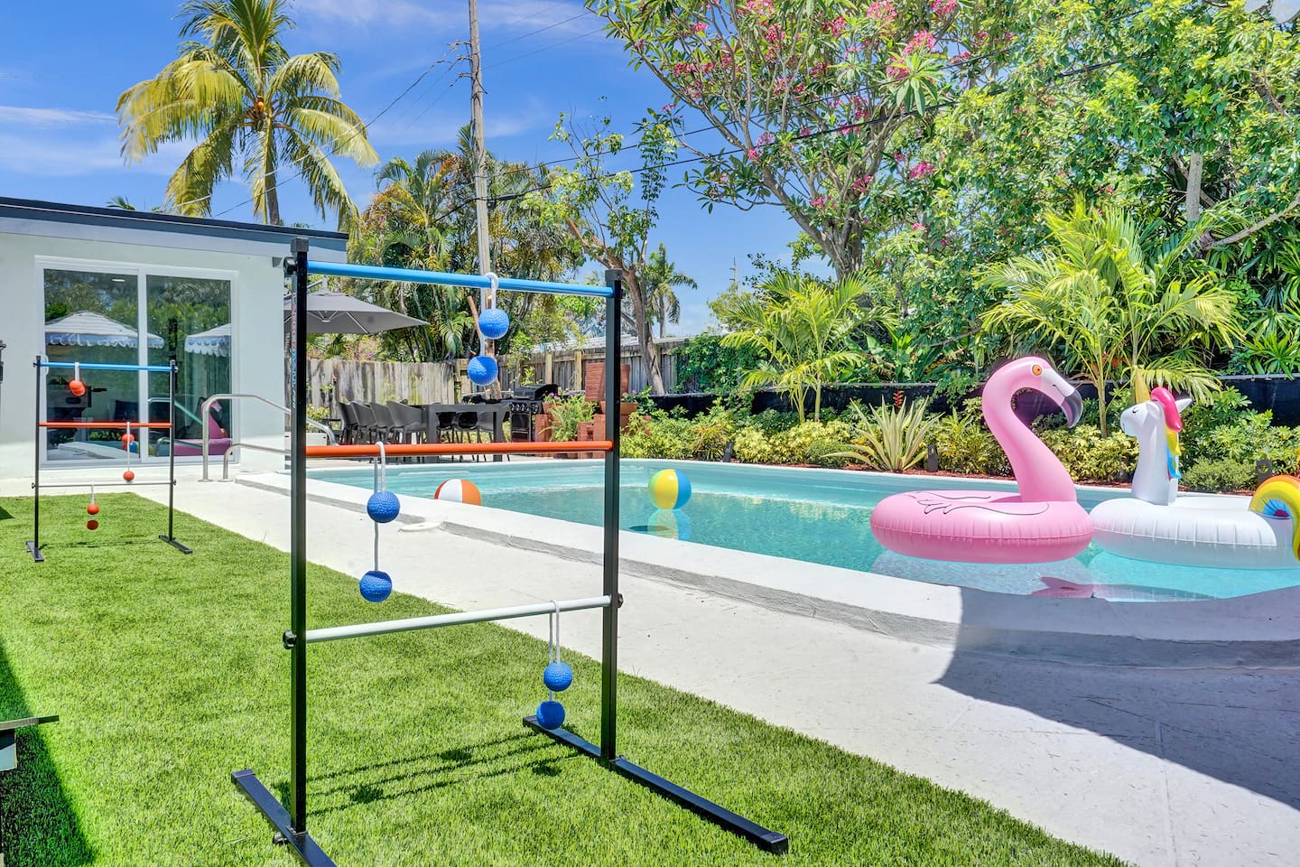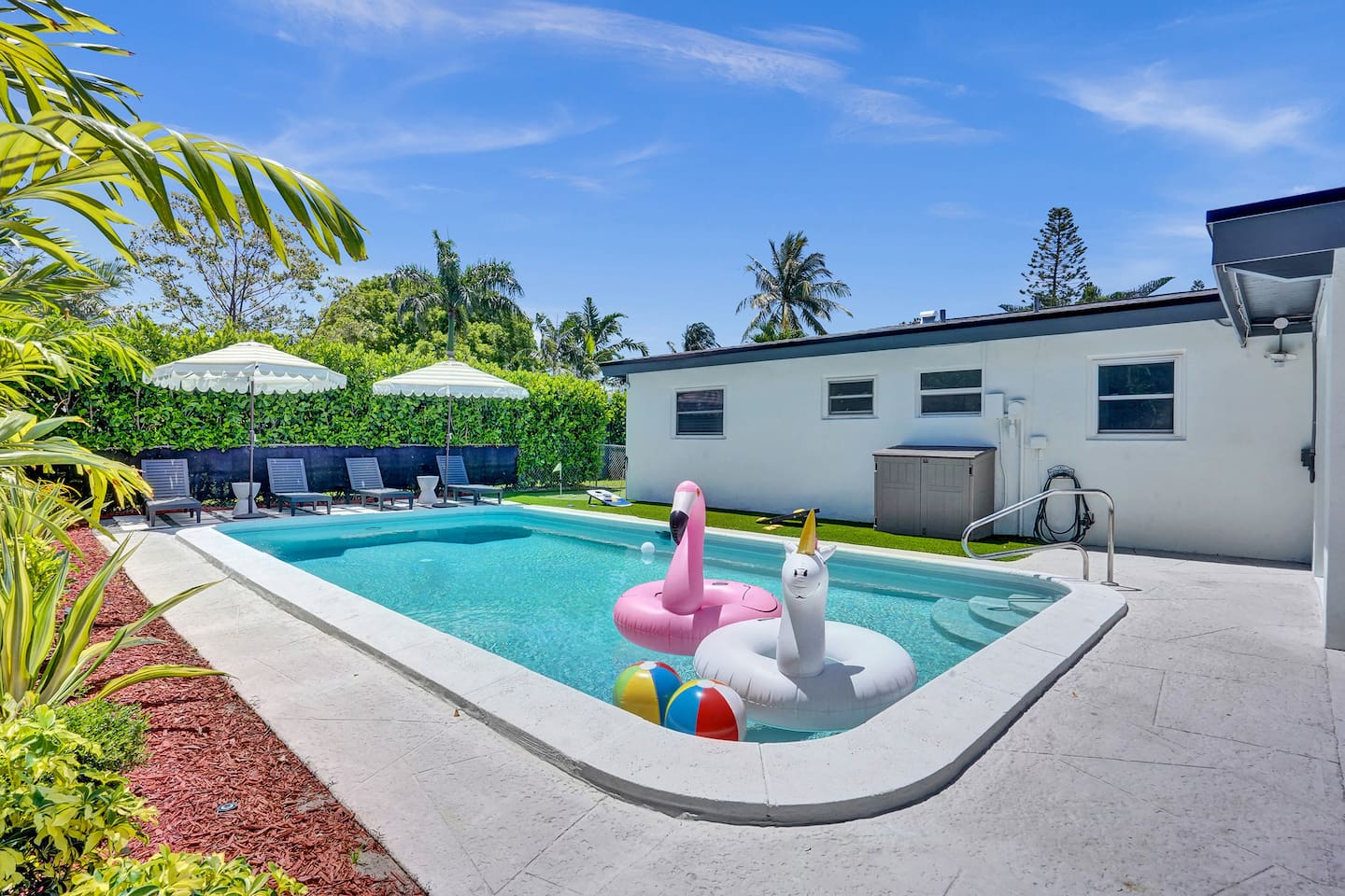 Welcome to Papa's Getaways' Palmpano Oasis! Escape to tranquility at Palmpano Oasis, located in the heart of Pompano Beach. Our beautiful home is situated less than 10 minutes from the beach, 15 minutes from Las Olas Boulevard, and a short 10-minute drive from Lionel Messi and Inter Miami. Designed with comfort and fun for the whole family, our pool house is perfect for family getaways. Whether you're here for relaxation or adventure, this is the perfect spot for your next South Florida getaway.